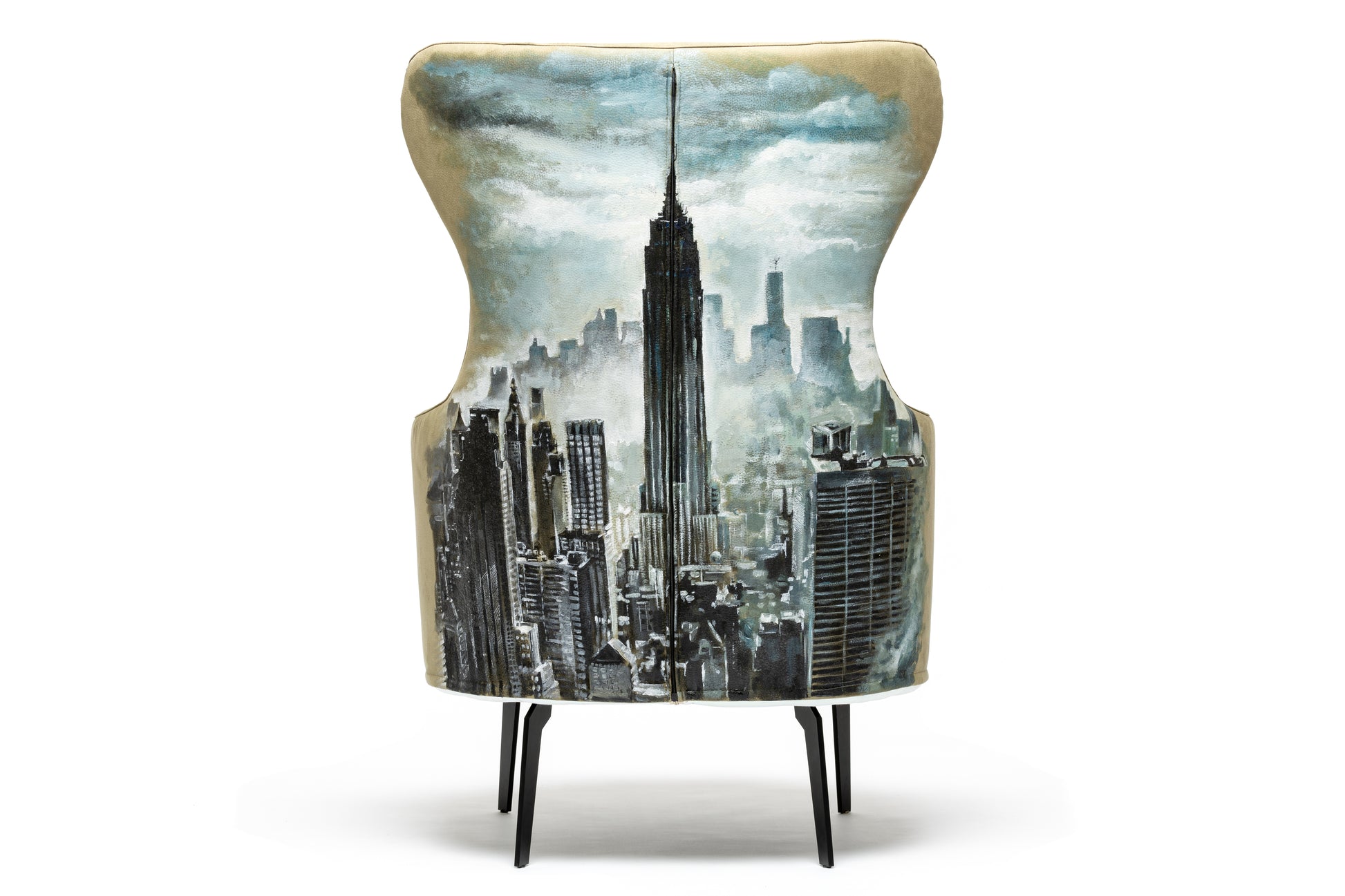 Fotelis, ant kurio puikuojasi urbanistinis piešinys – didingas, rūke skendintis, snaudžiantis miestas. Tikrovišką didmiesčio vaizdą ir būdingą šaltą atmosferą perteikia vyraujanti pilkų ir juodų atspalvių gausa. Žvelgiant į aukštus pastatus, dangoraižius, aplanko beribės erdvės, skrydžio pojūtis, kviečiantis pažinti ir su nekantrumu pasitikti naują pradžią.
